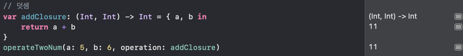 closure를 다른 함수의 파라미터로 사용하는 예제이다.