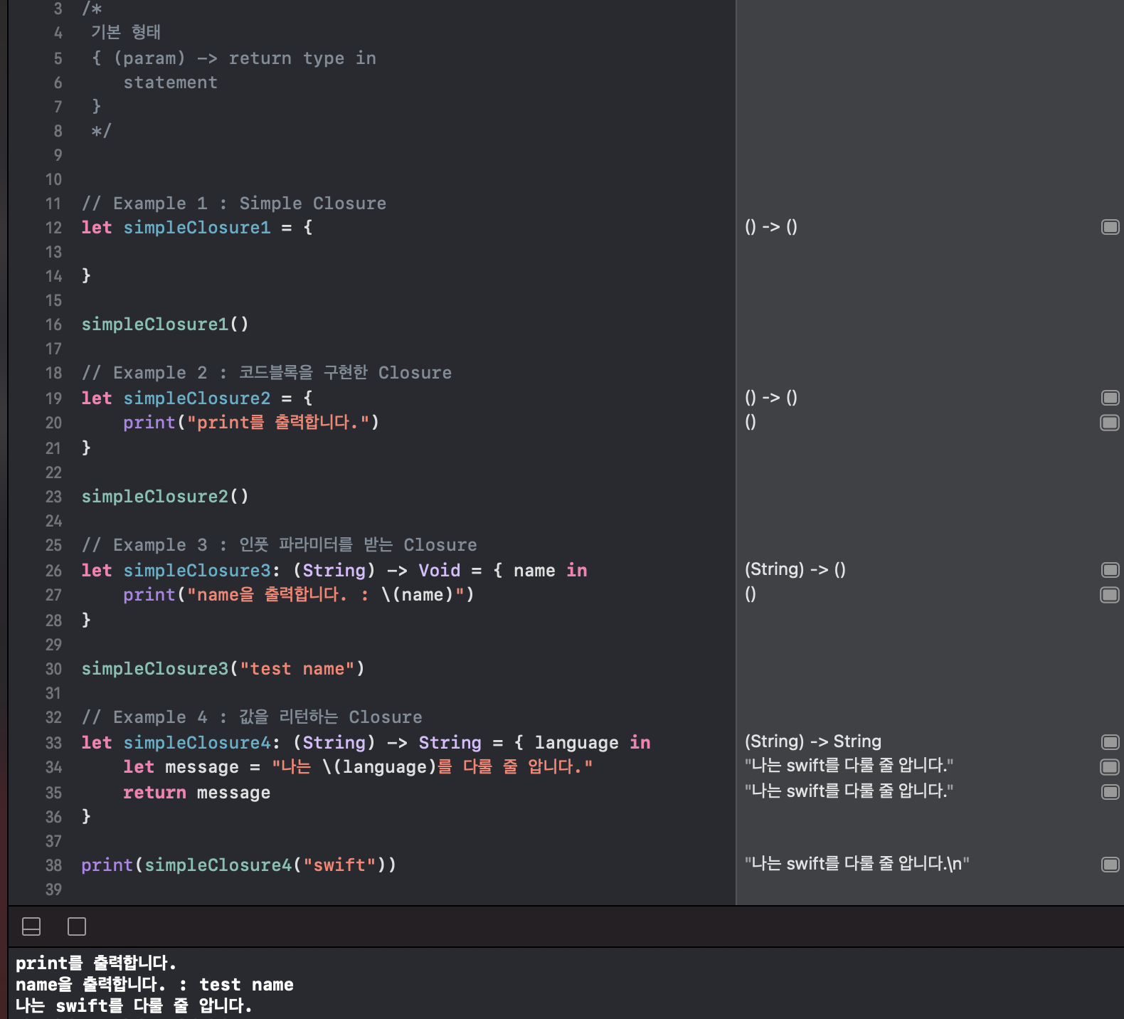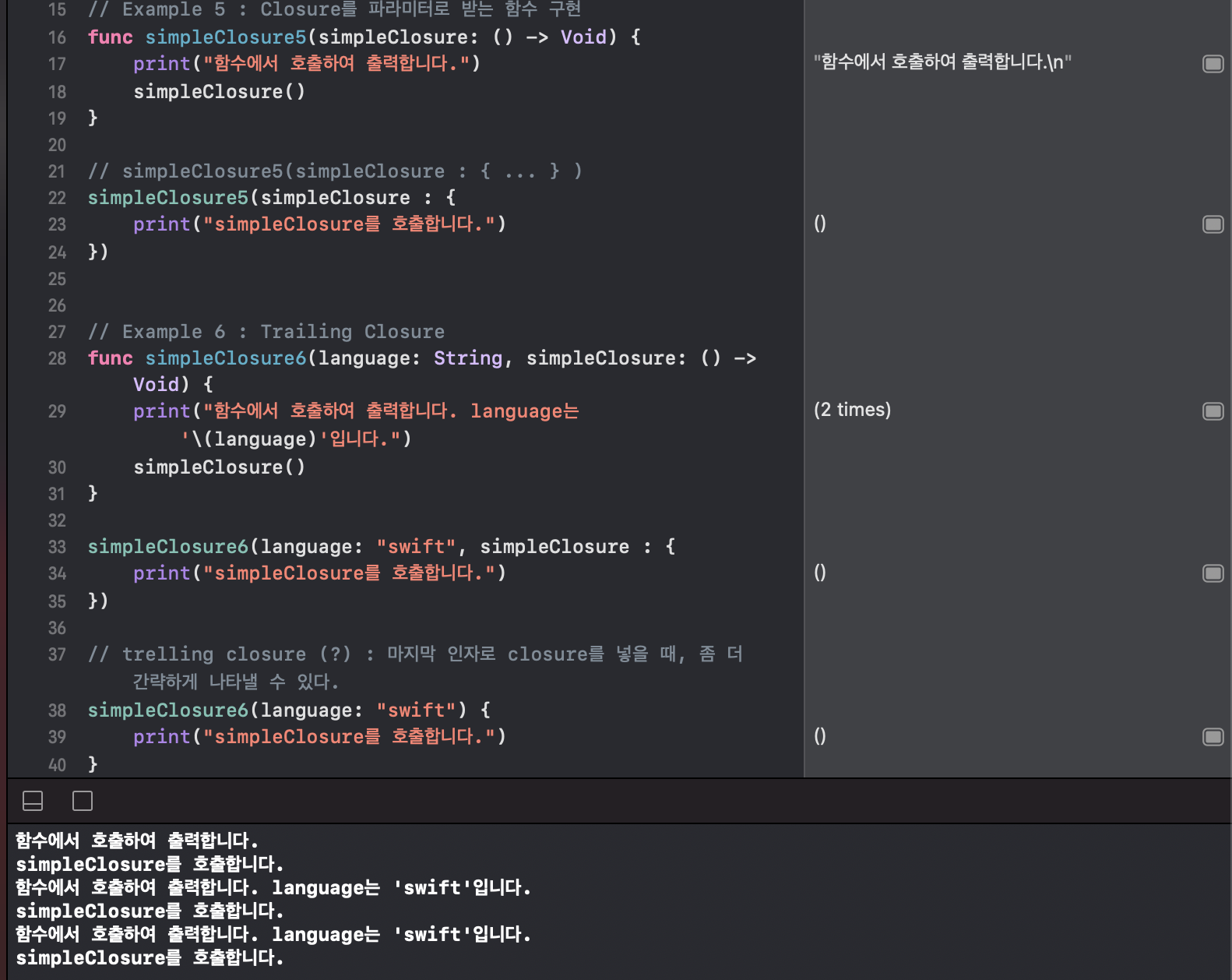 ex>데이터를 받아와서 화면에 뿌릴때, 네트워크로 데이터를 받아온(완료된) 다음에 수행명령코드를 Closure를 이용해서 짠다.