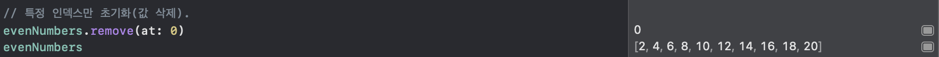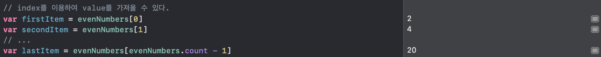 - element들은 각각의 순서(index)를 갖는다. ( 0부터 ~ [전체개수 - 1] )