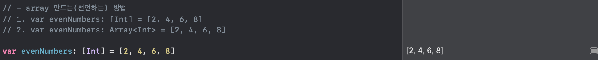 - 한 array에 있는 element들이 다 같은 타입이어야 한다.