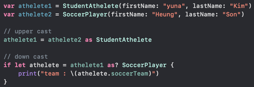 Identity (정체를 파악하기 위해) : 어떤 학생 인스턴스가 있는데, 체대생인지 미대생인지 확인하는 경우