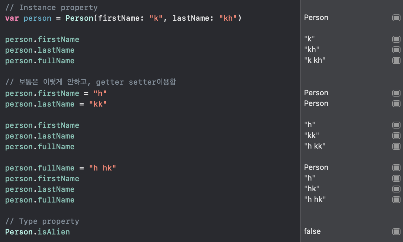 Instance Property : 정의한 struct 혹은 classe대로 인스턴스를 생성하고자 할 때 사용한다.