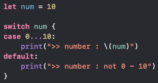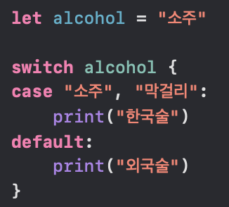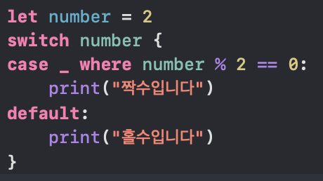 기존 다른 언어들의 switch와 유사하지만, swift만의 특이점이 있다.