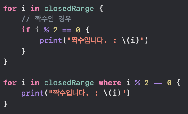 for 안에 where을 넣어서, 조건을 만들어줄 수 있다.